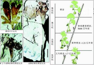 一百多年来,世界各地时有研究人员发现距今约一亿至两亿年(即侏罗纪至早白垩纪)的银杏化石,但多为叶部化石(叶片),在分类学和进化上的意义相对不足。近年来,我国科学家在银杏分类及其进化研究上取得不少进展。早在1989年我国河南就发现了已知最早(约一亿七千万年前)、保存最完整的银杏化石,证实银杏属确实是十分古老的一类植物,而且这种古老的银杏化石的发现提供了银杏进化过程的重要证据。