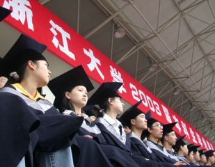 浙江大学2003届学生毕业典礼今日在玉泉校区体育场举行。6800名毕业生和校领导及有关部门负责人出席典礼。党委书记张浚生、校长潘云鹤等校领导为毕业生代表颁发了学位证书。大会还宣读了学校关于2003届优秀毕业生和非西部生源毕业生到西部就业的表彰决定,并向优秀毕业生代表和赴西部就业的毕业生颁发了荣誉证书。此前,竺可桢学院已于6月27日举行了竺可桢学院2003届学生毕业典礼,学院还邀请了学生家长来校参加典礼。 摄影:卢绍庆