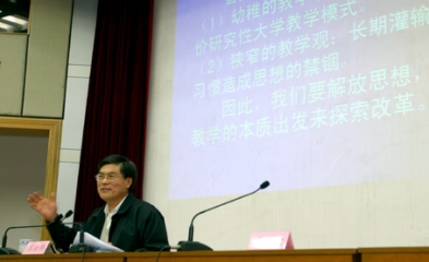 潘云鹤校长在报告中围绕“努力把握‘三个代表’重要思想的理论精髓”这个主题,着重浙江大学走向世界一流的改革探索,提出了构建研究性大学本科教育新体系、构建新科研体系、建立适合学术生态的校园新体系、构建网络式的社会服务新体系、建立面向一流的师资人才新体系等五个新系体的构建设想。