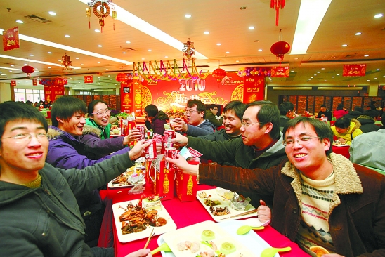 除夕之夜,浙大紫金港校区食堂二楼挂满了气球、中国结和红灯笼,1000多名浙大学子今年春节留校过年,浙大学工部特意在玉泉和紫金港两个校区安排了两个场地,年夜饭采用自助餐形式,食堂准备了100多道各色点心。