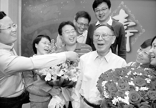 昨晚6时,杭州汪庄,不知情的以为这里要开“达沃斯经济迷你论坛”,160多位金融、证券业高管在这里齐刷刷亮相:中信证券公司的某副董事长下午5时刚从法国就银行收购谈判回杭直奔这里;澳大利亚某大学的教授专程打飞的赶来;上海某证券公司副总经理、香港某资产管理公司总经理、杭州某商业银行副行长……这些杭州华尔街精英,昨晚他们的身份变成了同一个——浙大周文骞教授的学生。他们郑重地为80岁的导师过生日。