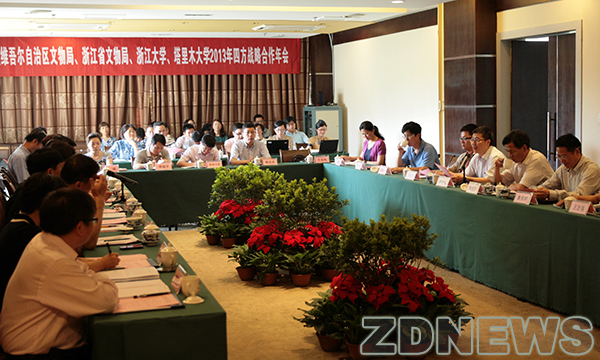 5月14日上午,在浙江大学召开的2013年四方战略合作年会上,新疆文物局、浙江省文物局、浙江大学、塔里木大学再签合作协议,校地四方将进一步整合多方资源,汇聚国内外文化传承创新领域的专家,联合开展关于新疆文化遗产保护与传承发展的重大战略性问题的规划研究,服务于国家和新疆地区发展的总体战略决策。