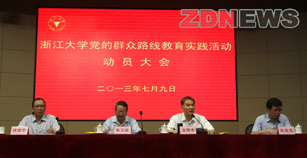 7月9日上午,浙江大学召开党的群众路线教育实践活动动员大会,进一步学习贯彻中央精神,动员部署全校教育实践活动。浙江大学党委书记、浙江大学党的群众路线教育实践活动领导小组组长金德水作动员部署。中央第43督导组组长、华中科技大学原党委书记朱玉泉讲话。浙江大学校长、浙江大学党的群众路线教育实践活动领导小组副组长林建华主持会议。