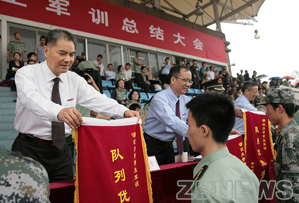 浙大校领导金德水、林建华、邹晓东、张土乔、任少波、严建华和承训部队首长邹邦华等观看汇报演出,并共同对优胜连队、先进个人颁奖。