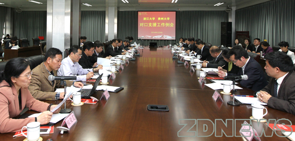 5月4日,贵州大学党委书记姚小泉、校长郑强率团来浙江大学访问。当天下午,两校召开对口支援工作例会,研究讨论2014年对口支援工作。浙大党委书记金德水在会前会见了代表团一行,校长林建华出席会议。