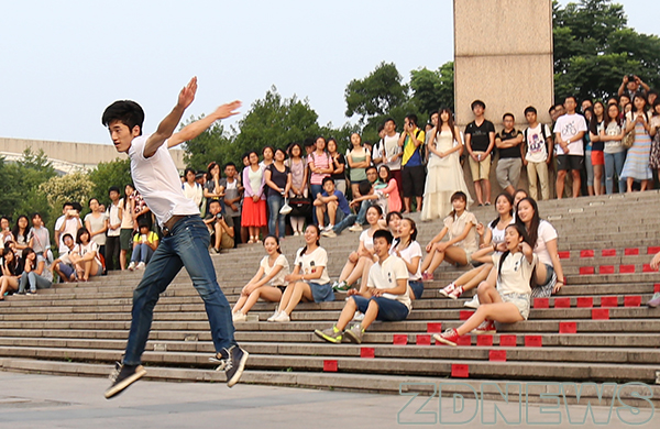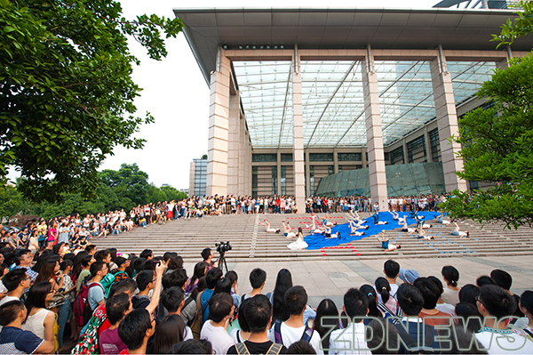 6月9日、10日,浙江大学文琴舞蹈团、啦啦操队和轮滑社的40多位学生,在紫金港校区图书馆门前联袂献演两场露天“环境舞蹈”秀,为即将走出校门的毕业生送行。
