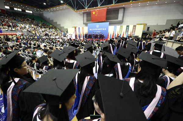 6月20日,浙江大学2014届学生毕业典礼和学位授予仪式在浙江大学玉泉校区举行,来自浙江大学部分院系的3000多名毕业生参加了学位授予仪式。 (新华社记者 鞠焕宗 摄)2014-06-21