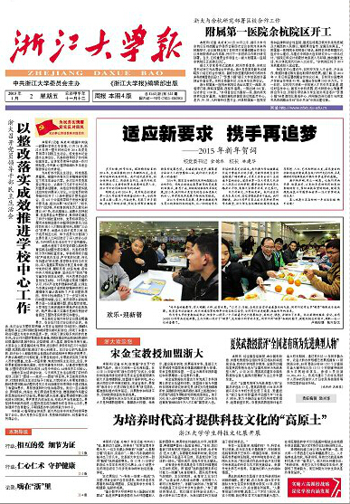 一版要闻:2015 年新年贺词;二版、三版:浙大“好医生、好护士”奖候选者;四版:欢乐学生节