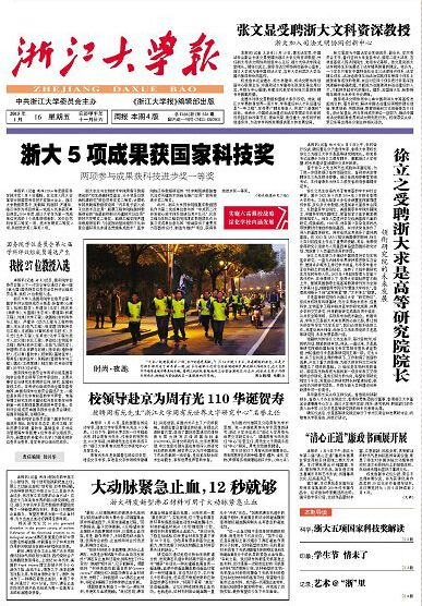 一版要闻:浙大5项成果获国家科技奖;二版:解读国家科技奖;三版:学生节背后;四版:艺术浙里
