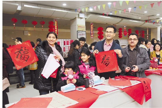 大年三十,浙江大学有800多位师生留校过年。下午3时,紫金港校区食堂人声鼎沸,红彤彤的灯谜、红彤彤的对联映红了同学们的笑脸,大家拿起毛笔,为新的一年亲手写上一个“福”字。在“新年活动专区”,同学们写福、送福、猜灯谜,在热闹的民俗活动中感受浓浓年味。