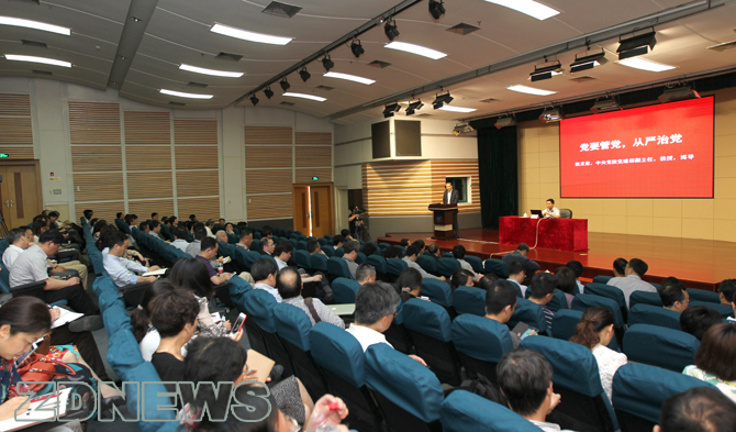 5月15日上午,校党委召开中心组理论学习(扩大)会议,中共中央党校党建部副主任祝灵君教授应邀作“党要管党,从严治党”的专题报告。校党委书记金德水主持学习会。