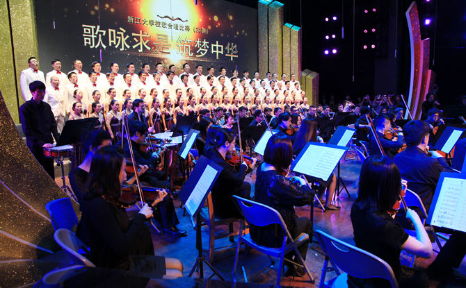 5月21日晚,浙江大学建校118周年校庆大会暨“歌咏求是 筑梦中华”合唱比赛(决赛)现场,12支入围队伍用歌声迎接校庆、颂扬求是,抒发对母校的爱与祝福。校领导吴朝晖、邹晓东、任少波、周谷平、严建华,发展委员会副主席郑造桓、王玉芝、李培培和省教育厅副厅长鲍学军、省委宣传部副巡视员吴熔、省教育工会主席李逸凡等出席校庆大会并欣赏了各参赛队的精彩演出。