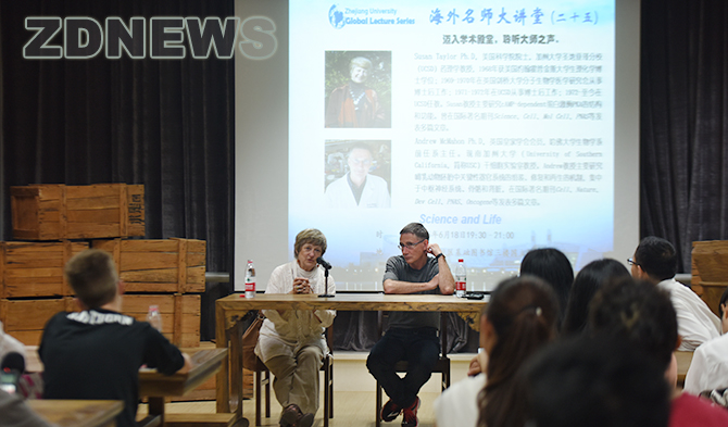 实验室中“板凳时间”和讨论时间该怎么分配?各个学习阶段的学习重心应该放在哪里?6月18日晚,第二十五期海外名师大讲堂举行题为“科学与生命”的交流讨论,来自加州大学圣地亚哥分校(UCSD)药理学教授Susan Taylor博士和南加州大学干细胞实验室的教授Andrew McMahon博士,和浙大的同学们分享了各自多年科研的心得体会。