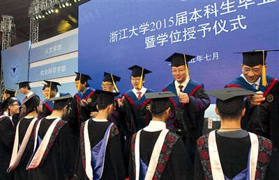 昨天下午,在一场酣畅淋漓的大雨中,浙江大学2015届5400余名本科毕业生迎来了他们的毕业典礼暨学位授予仪式。