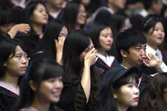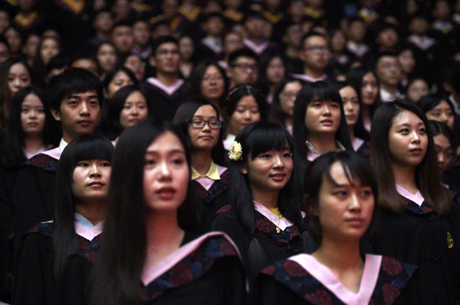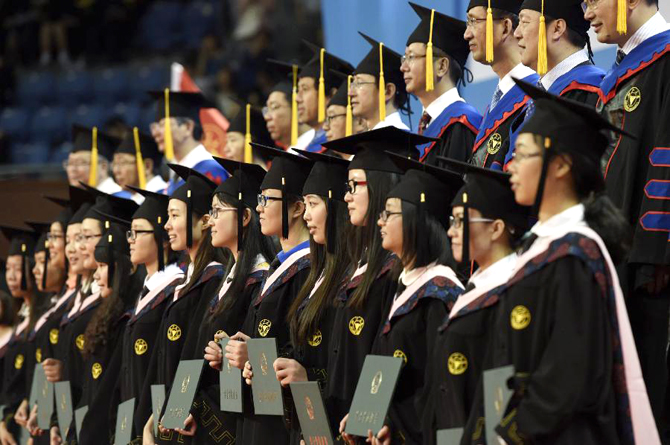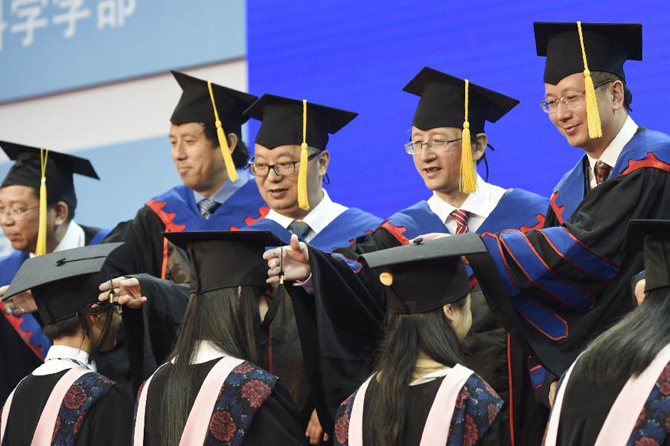 7月1日,浙江大学2015届本科毕业生参加毕业典礼。当日,浙江大学2015届本科生毕业典礼暨学位授予仪式在浙江大学紫金港校区举行,5400余名本科毕业生参加了学位授予仪式。 (新华社记者 鞠焕宗 摄)2015-07-01
