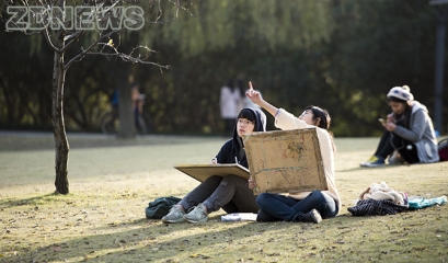 终于告别阴雨连绵的天气,久违的阳光伴着秋寒光临紫金港校区。虽然启真湖畔寒风瑟瑟,但同学们在湖边放松散步、绘画拍照的情形,反而令紫金港在秋阳的沐浴下显得愈发温暖了。