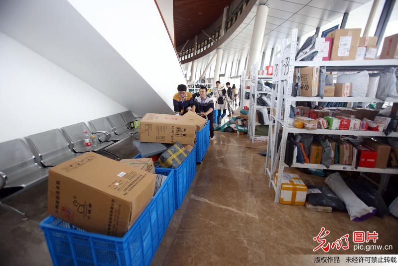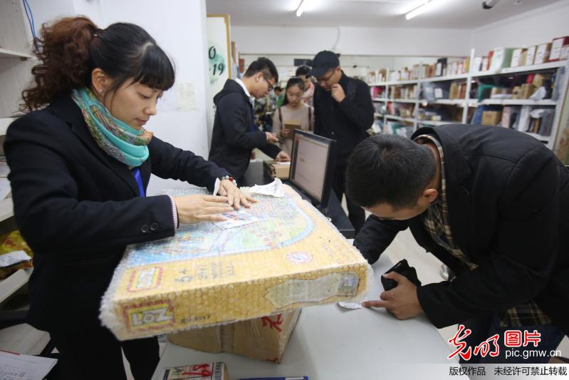 11月13日,浙江大学体育馆,数千平方米的体育馆化身快递超市。