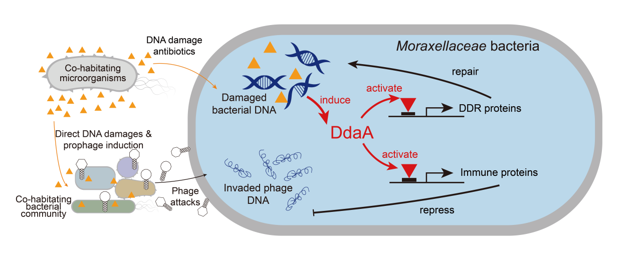 莫拉氏菌科细菌Moraxellaceae(如鲍曼不动杆菌)因其对多种抗生素容易产生耐药性,使其感染致死率高达70%。多重耐药鲍曼不动杆菌的治疗,已经成为临床实践的“超级挑战”。然而由于这类细菌缺乏传统DNA损伤响应(DDR)系统(如SOS响应系统),其DNA损伤响应机制长期未被揭示。在此背景下,研究者通过比较基因组学和分子生物学手段,发现DdaA蛋白是莫拉氏菌科细菌的“全能守护者”。