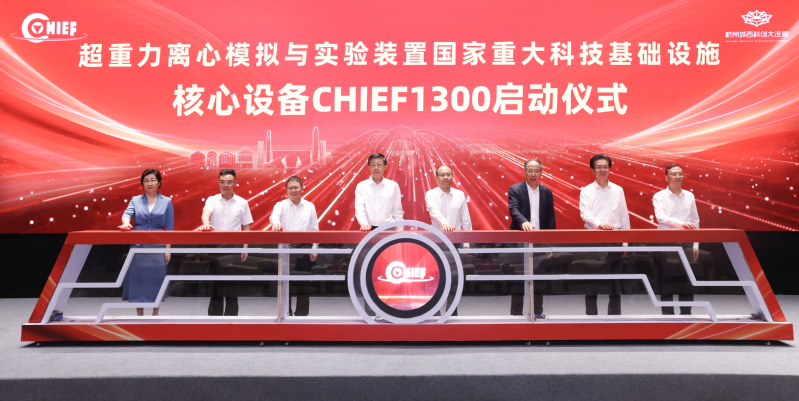 浙江省委常委、杭州市委书记刘非,浙江大学校长马琰铭院士,超重力离心模拟与实验装置项目首席科学家陈云敏院士等共同启动超重力离心模拟与实验装置国家重大科技基础设施核心设备CHIEF1300。承建单位代表、中国工程物理研究院党委书记莫则尧,用户代表汪卫华院士发言。