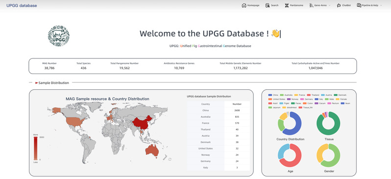 总体而言,该研究构建了一个专注于猪肠道微生物的统一基因组序列目录,通过对发育阶段、地理位置、品种和饲养方式的全面采样,显著拓展了猪肠道微生物组信息。另外,该研究提供了一个研究者可查看、检索、下载的在线网站(https://alphaindex.zju.edu.cn/upgg/#/),可以帮助科研人员进行基于宏基因组的微生物特征挖掘。