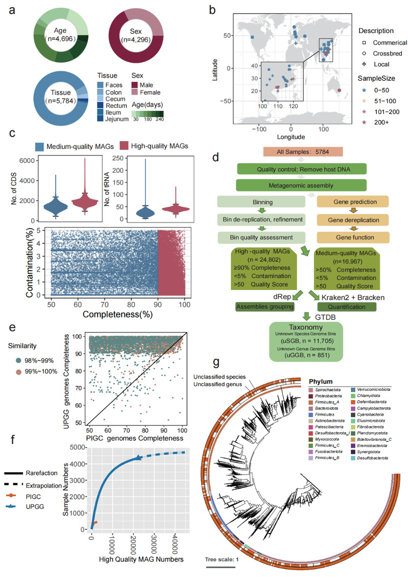 UPGG的建立不仅加深了我们对肠道菌群与宿主之间相互作用及共进化机制的理解,也有助于识别未被培养的微生物种类,从而深入分析微生物组如何随饮食、年龄、健康状况及环境条件变化。此外,鉴于猪与人类肠道菌群的高度相似性,UPGG还为人类健康相关研究提供了重要的模型和数据支持。