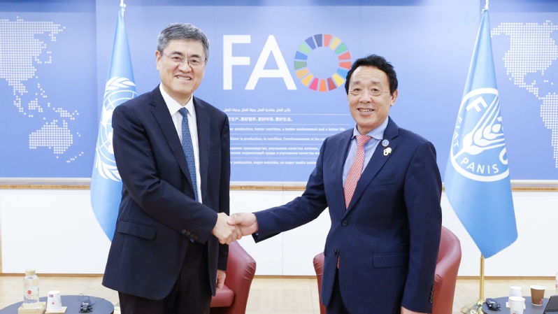 在联合国粮食及农业组织总部,任少波与总干事屈冬玉举行会谈,回顾了双方合作历程与成果,并赠送“中国历代绘画大系”代表卷册,祝贺联合国粮食及农业组织成立80周年。双方一致认为,高校与国际组织深化合作具有重要意义。屈冬玉肯定了浙江大学在综合实力、国际合作和全球声誉方面取得的发展成就。任少波表示,愿继续携手粮农组织,积极落实联合国2030年可持续发展议程,为构建人类命运共同体贡献浙大智慧与力量。