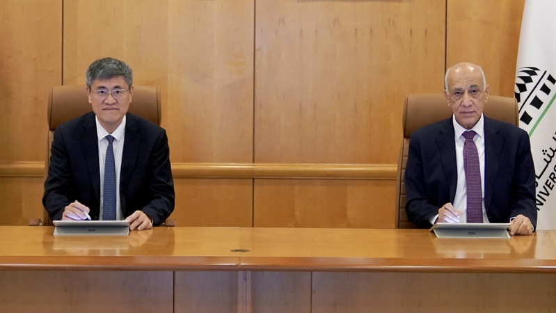 在沙迦大学,任少波与校长埃萨姆丁·阿加米(Esameldin Agamy)举行会谈,并共同签署校际合作备忘录,正式建立合作伙伴关系。双方围绕工程、信息、医学、经济管理及人文交流等领域的合作前景进行了深入探讨,一致表示将以此次会谈为起点,进一步加强对接,推动实质性合作项目落地。沙迦大学学术事务副校长约瑟夫·哈耶克(Yousef Haik)、医学及健康科学副校长库泰巴·哈米德(Qutayba Hamid)等出席签约仪式及会谈活动。