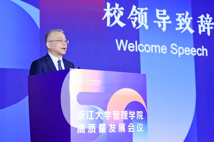 浙江大学党委副书记傅强出席发展会议并致辞。他表示,管理学院面向国家战略需求,在扎根中国育人才、顶天立地建学科、开放创新促发展方面取得了诸多硕果,为服务现代化产业体系建设与中国自主知识体系建构贡献了重要力量。站在新的历史起点上,他对管理学院未来发展提出三点期待。一是构建以学生成长为中心的卓越教育体系,一体推进教育科技人才发展;二是打造群峰竞秀的世界优秀学科群,服务国家科技自立自强和自主知识体系构建;三是增强全球合作网络能级,以开放创新与产教融合培育新质生产力。